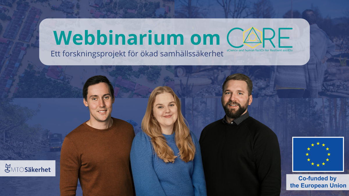2025-06-09MTO Säkerhet bjuder in till ett webbinarium 18 september där vi presenterar resultatet och delar med oss av våra erfarenheter och lärdomar från det EU-finansierade forskningsprojektet CORE (sCience & human factOr for Resilient sociEty).